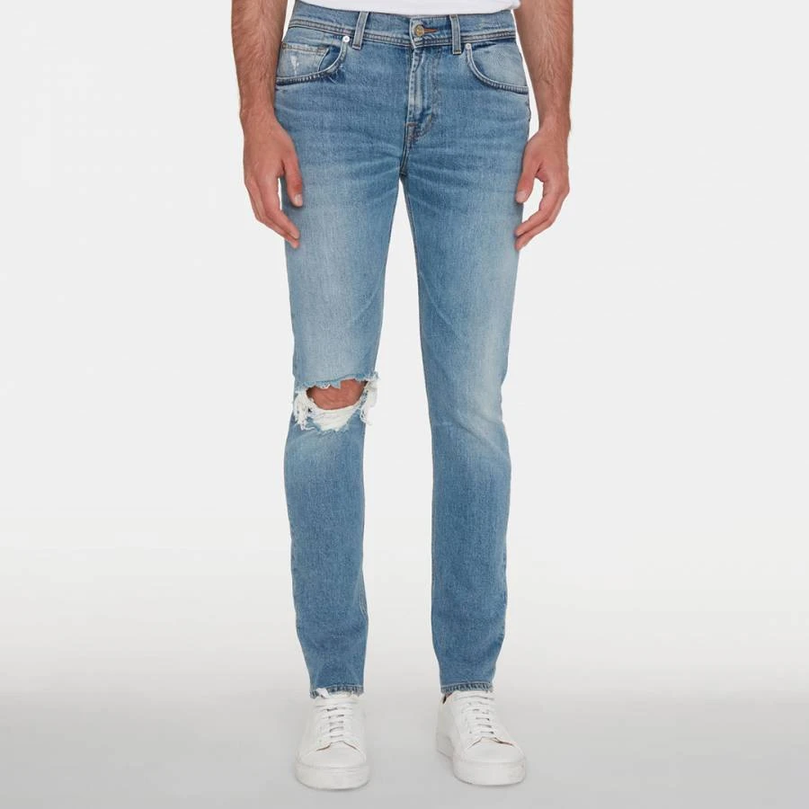 7 For All Mankind Pale Blue Slimmy Distressed Stretch Jeans