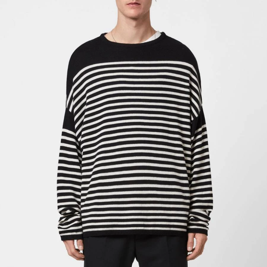 AllSaints Black Striped Taleze Wool Blend Jumper