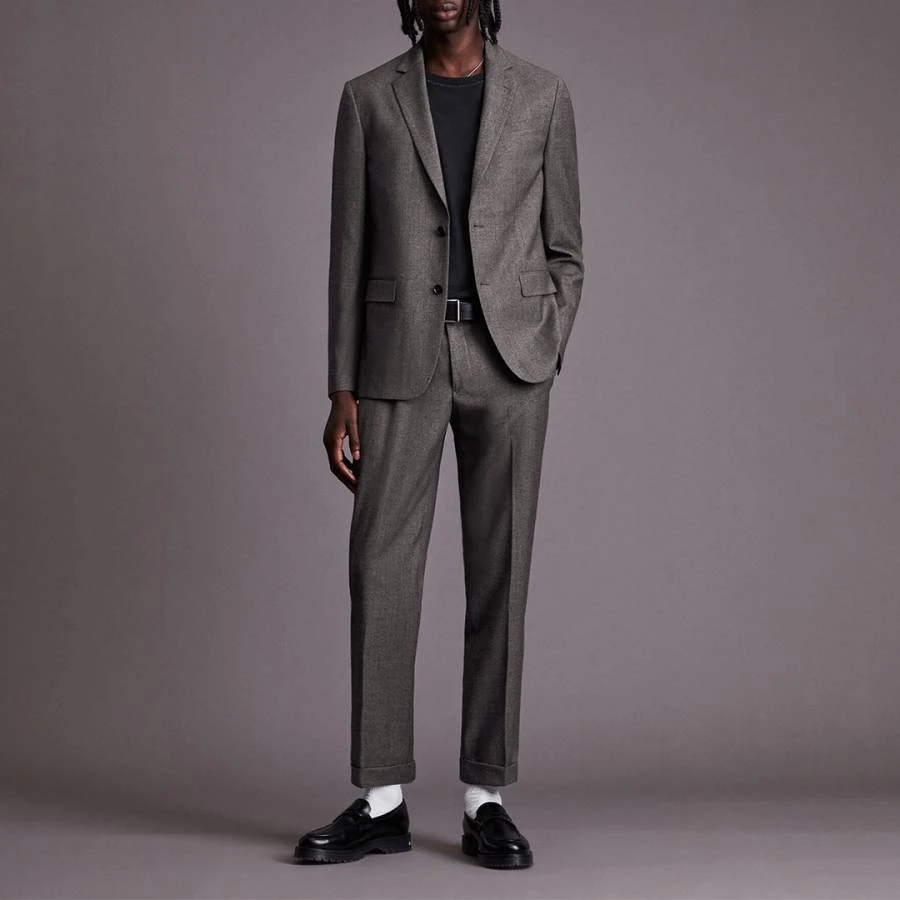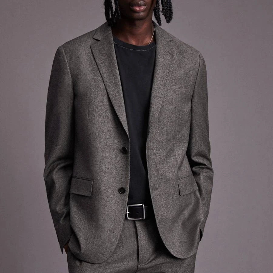 AllSaints Grey Ren Single Breasted Wool Blend Blazer