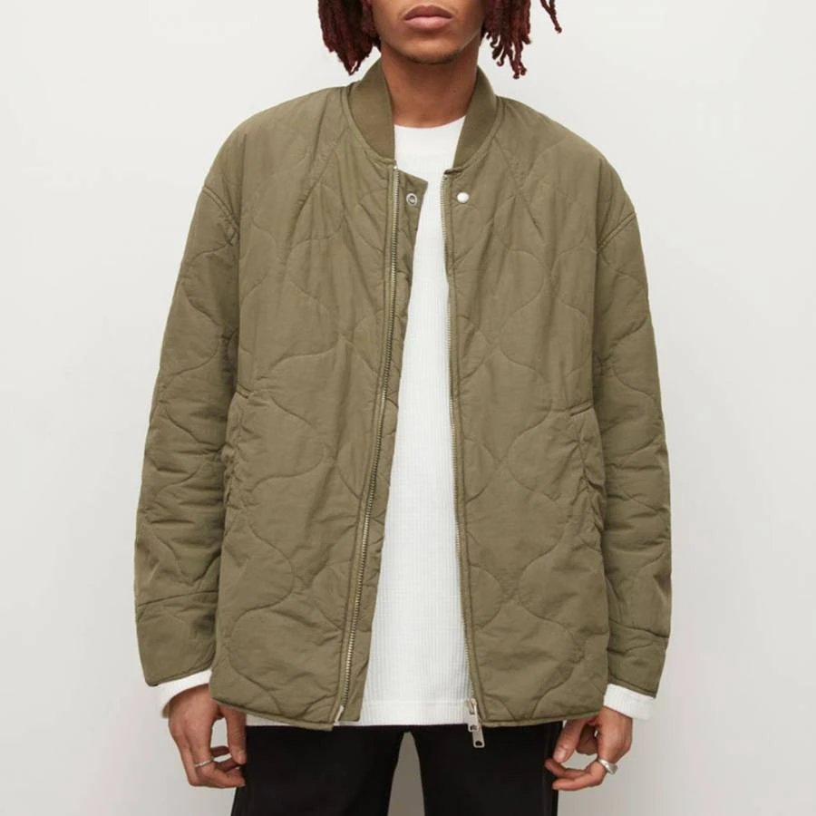 AllSaints Khaki Jiro Quilted Cotton Blend Jacket