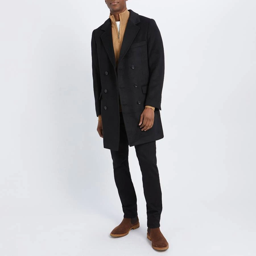 Black Double Breasted Wool Blend Coat
