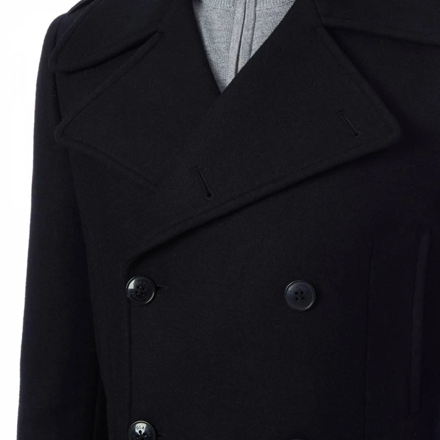 Black Elmo Double Breasted Wool Blend Coat