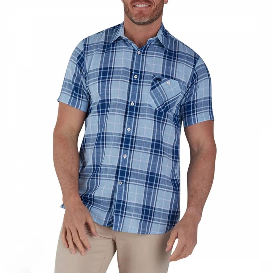 Blue Checked Cotton Logo Shirt