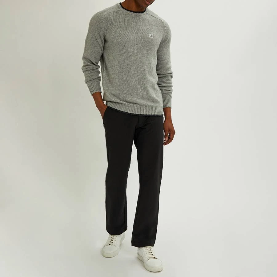 Grey Chunky Crew Neck Lambswool Sweater