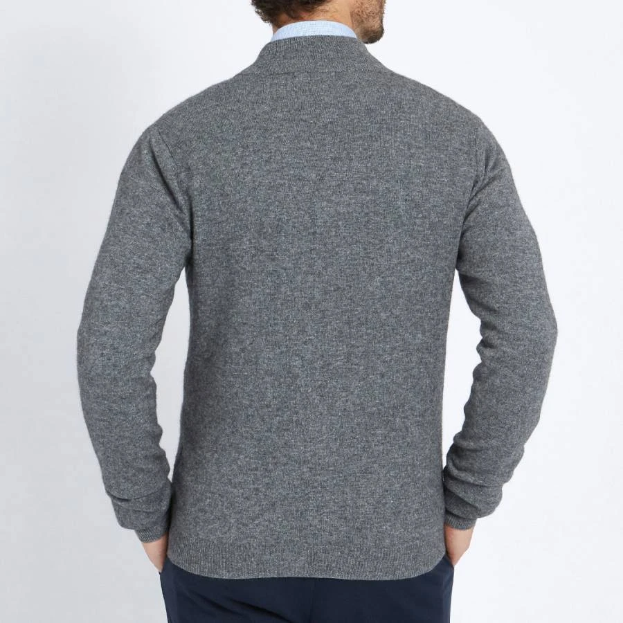 Grey Full Zip Contrast Collar Cashmere Jumper