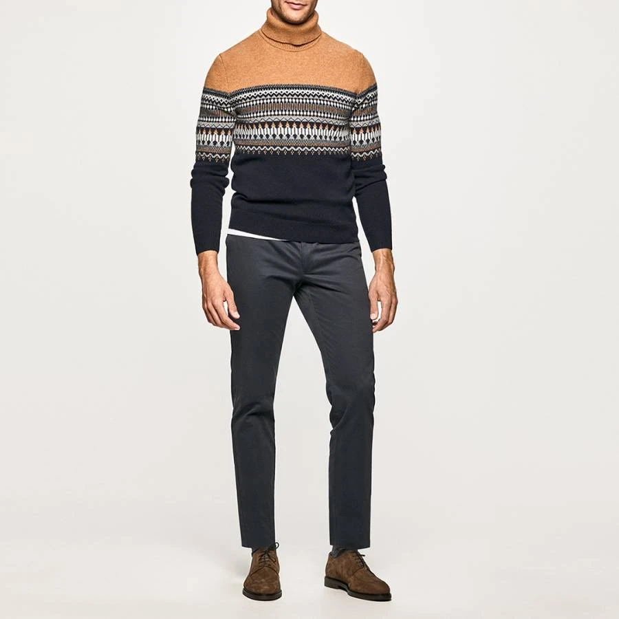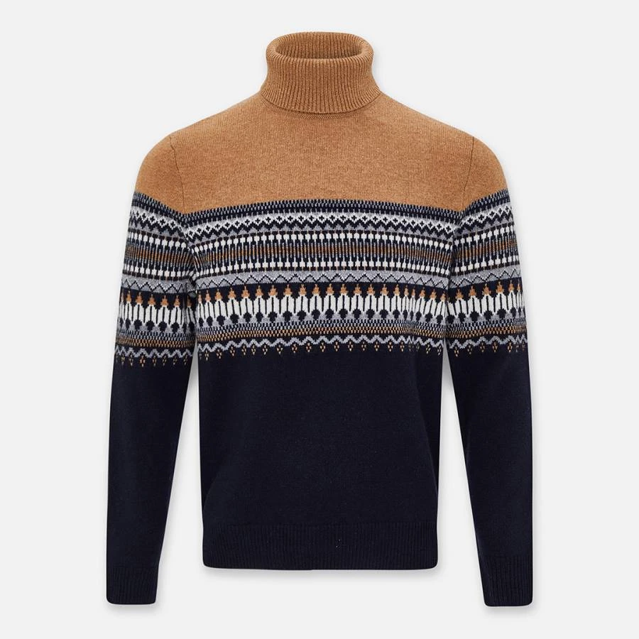 Hackett London Camel Fairisle Pattern Wool Roll Neck Jumper