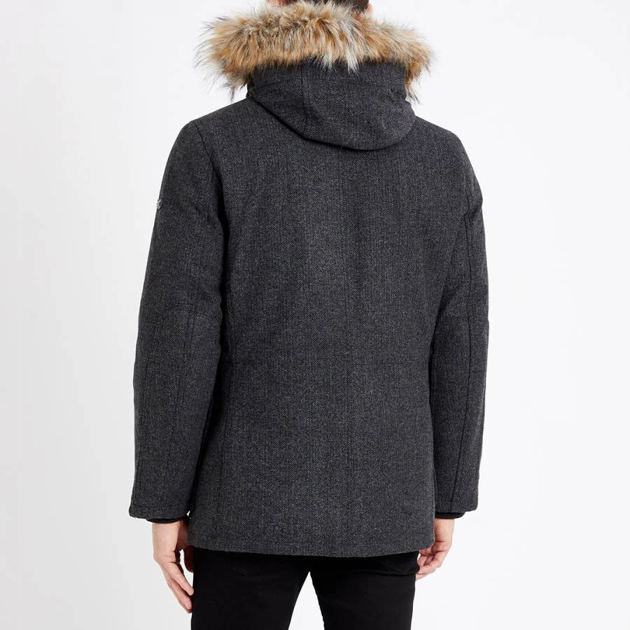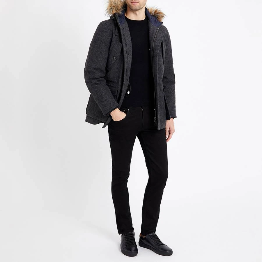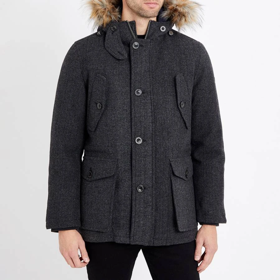 Hackett London Charcoal Faux Fur Hood Wool Blend Jacket
