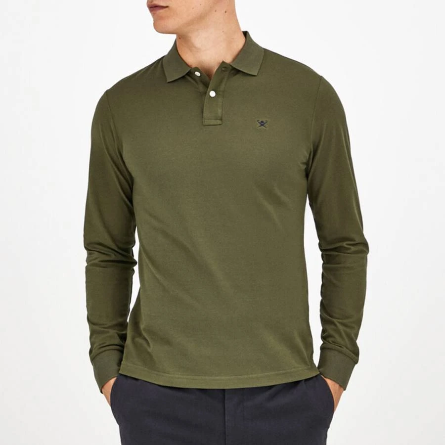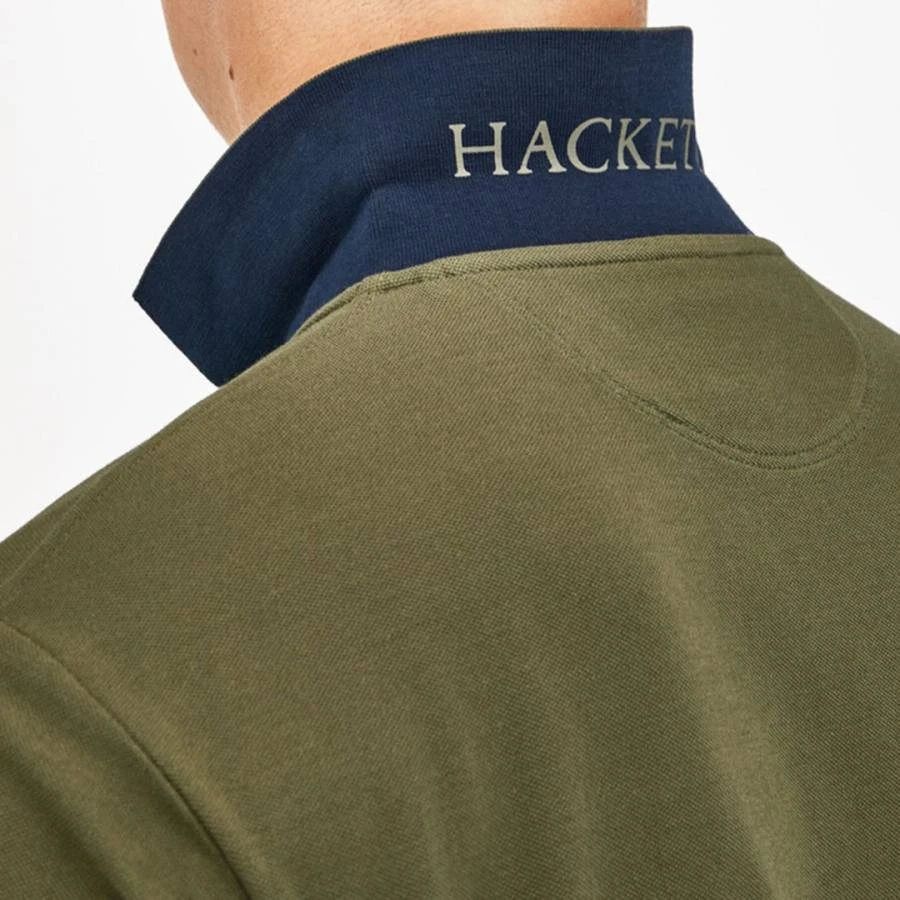 Hackett London Green Slim Fit Long Sleeve Cotton Polo Shirt