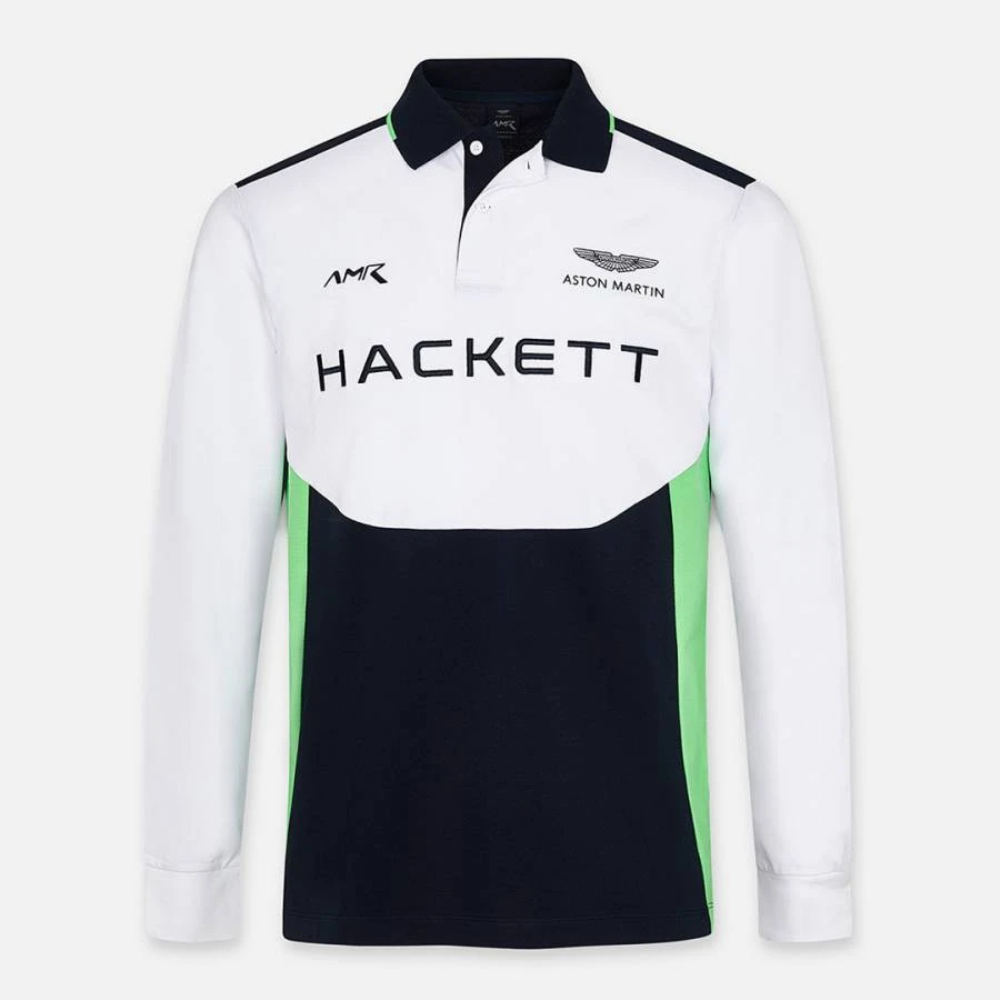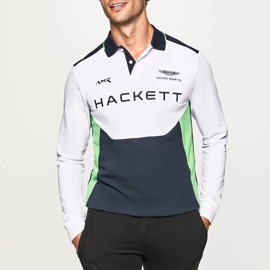 Hackett London White AMR Long Sleeve Cotton Blend Polo Shirt
