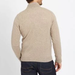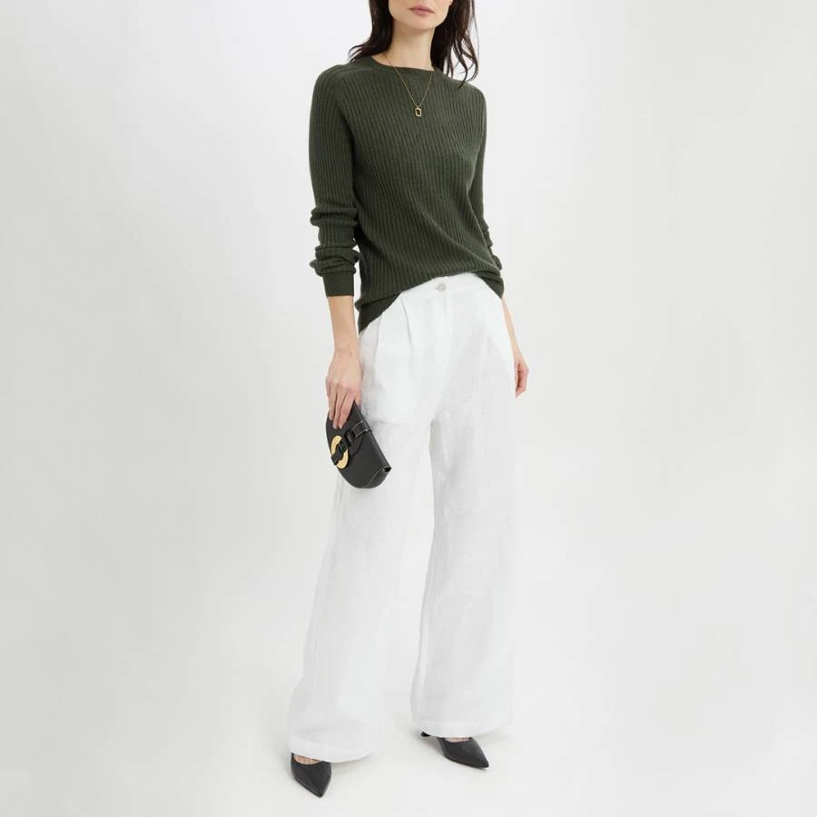 Khaki Crew Neck Ribbed Cashmere Jumper