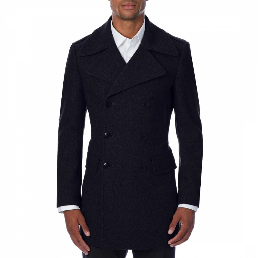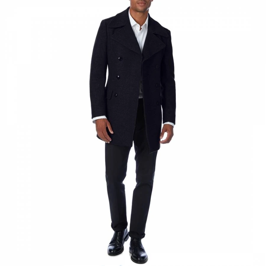 Navy Elmo Double Breasted Wool Blend Coat