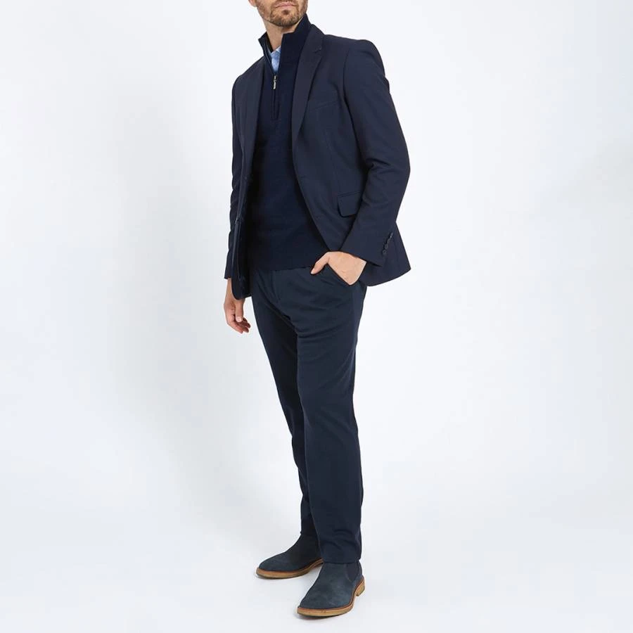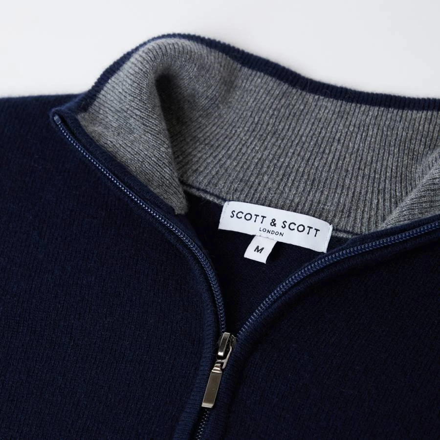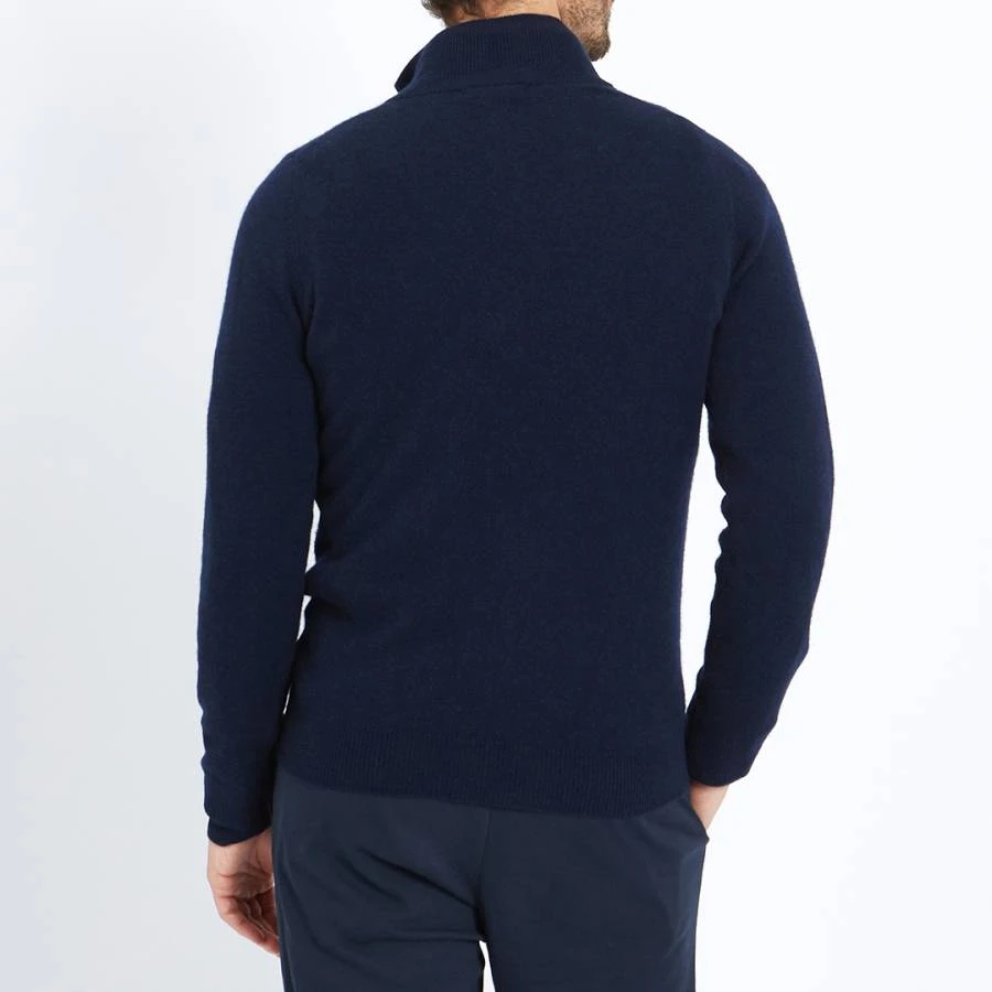 Navy Half Zip Contrast Collar Cashmere Jumper