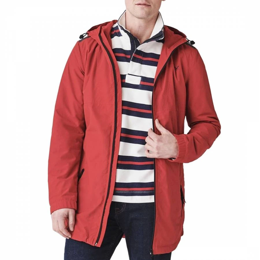Red Cotton Blend Hooded Jacket