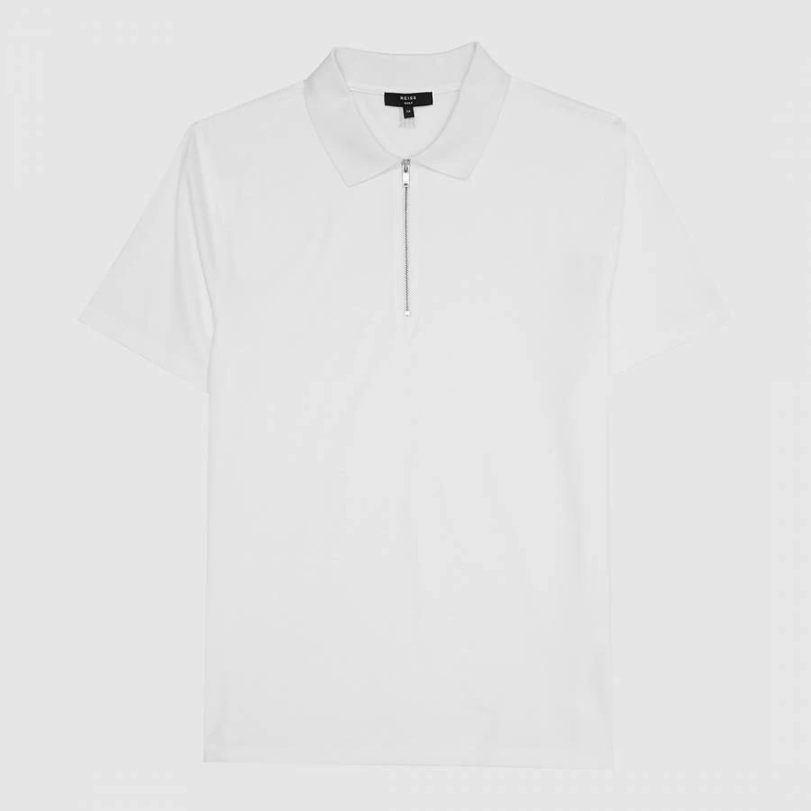Reiss White Belfry Zip Collar Cotton Polo Shirt