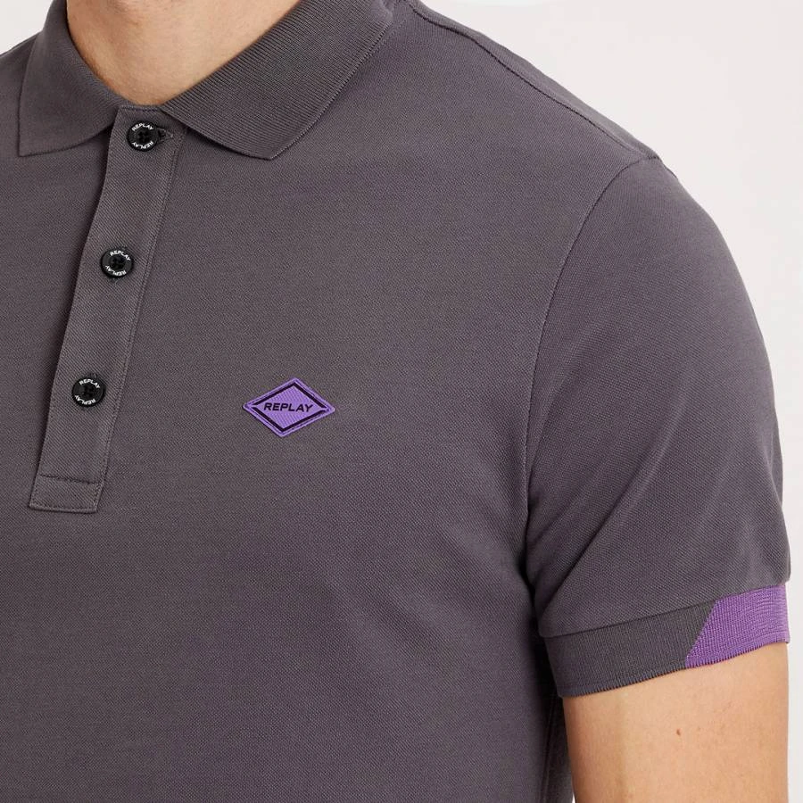 Replay Grey Pique Stretch Cotton Polo Shirt