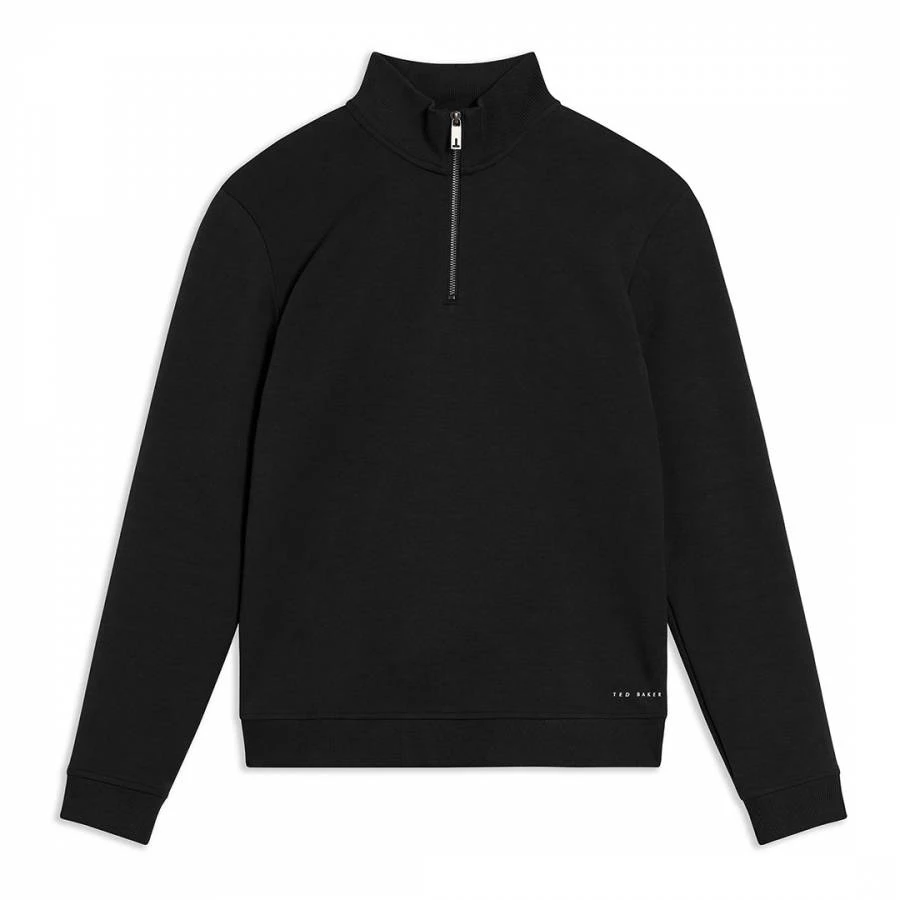 Ted Baker Black Antram Half Zip Cotton Blend Jumper