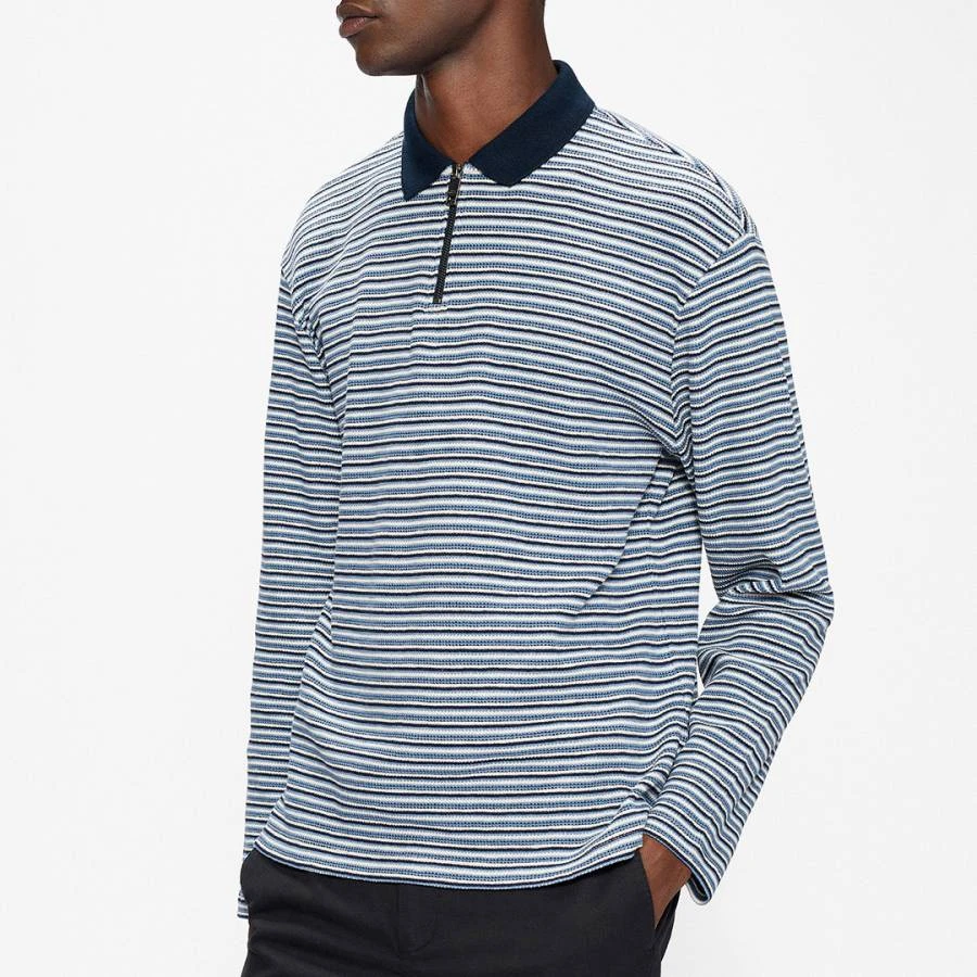 Ted Baker Blue Beer Long Sleeve Textured Polo Shirt