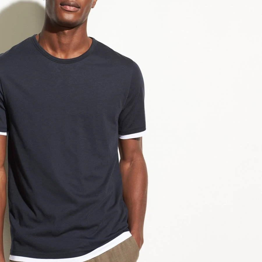 Vince Navy Double Layer Cotton T-Shirt